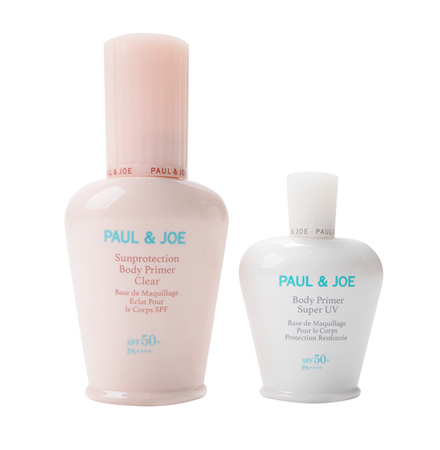 サンプロテクション ボディプライマークリア(写真左)は、ブランド最高レベルのUVカット効果を実現。肌に潤いを与え、ポール & ジョーこだわりのスクレドールによるメイク効果で透きとおるようなツヤのある肌へ。スルスル伸び広がってべたつきにくいジェルエッセンスベースの日焼け止めです。ノーカラータイプなので毎日の日焼け対策に最適。