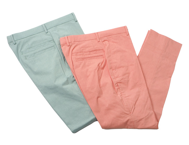 「ONLY GREEN」は、ビジネスウェアの上品さとゴルフ場での機能性を兼ね備えたオンリーの新シリーズです。こちらのコットンパンツは程よいカジュアル感が魅力。春夏らしい爽やかなカラーでコーディネートの主役になってくれます。動きやすいパターンや右後ろのダブルポケットなど、機能面でも重宝するアイテムです。