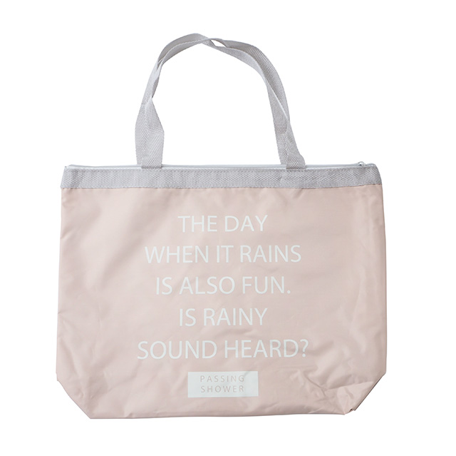 防水・撥水加工をほどこしたファスナー付きのレインバッグ。雨の日に荷物をまとめたり、普段のバッグをまるごと入れたりといった使い方がおすすめ。もちろん晴雨兼用で利用できます。