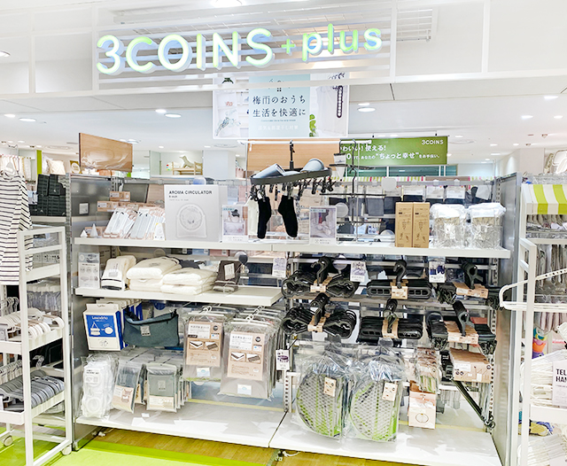 天王寺ミオの人気雑貨店「スリーコインズ」が、さらに商品のラインナップを充実させた「スリーコインズプラス」としてリニューアル。もちろんレイングッズの品揃えも豊富。今回はおすすめのレイングッズをご紹介。嬉しいプチプラのレイングッズを揃えて雨の日を乗り切りましょう。