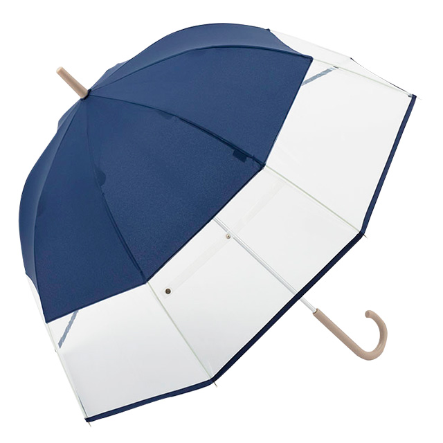 上半分を布、下半分をビニールで仕上げたハイブリッド傘。肩まですっぽり覆える深張りのドーム型ながら、ビニール部分から前が見えるので視界の悪い雨の日も安心です。ハンドル部分には抗菌加工済みの樹脂を使用。雨の日の相棒はこの傘で決まり!