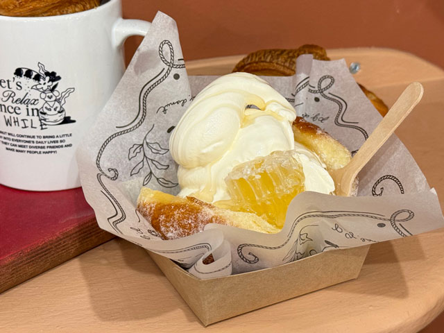 日常にちょこっとした幸せをお届けする「ピージードーナッツ」。夏はアイスドーナツがおすすめ♪ふわふわ食感のドーナツ生地に、濃厚なバニラソフトクリームをたっぷりトッピング。はちみつ✕コームハニーでハニーづくしの贅沢なアイスです。