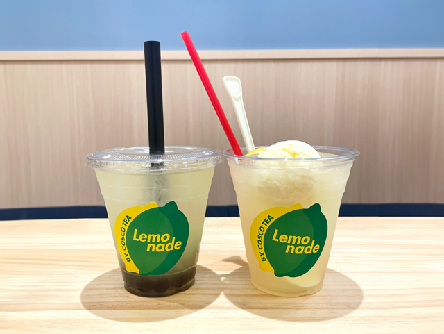 「レモネードスカッシュ」は、酸味が爽やかで暑い季節にぴったり。タピオカやアイスなどのトッピング(有料)を追加してお気に入りの1杯に仕上げるのもおすすめです♪