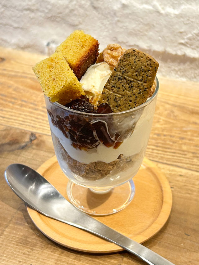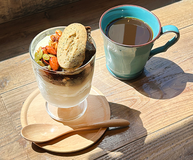 日本各地の自然豊かな里から厳選食材を仕入れる「玄三庵」は、カフェメニューにもこだわりアリ!15時以降限定の「コーヒーゼリーパフェ」は人気の豆乳プリンをベースにしたパフェ。ほろ苦コーヒーゼリーで元気をチャージして、暑い夏を乗り越えましょう♪