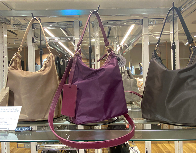 オンオフどちらも使える三日月型のトート。お子様と近くの公園にお出かけする時など「ちょっとそこまで」のワンマイルバッグとしてもおすすめです。取り外し可能なショルダー付きの2WAY仕様で肩掛けはもちろん、斜めがけもできます。