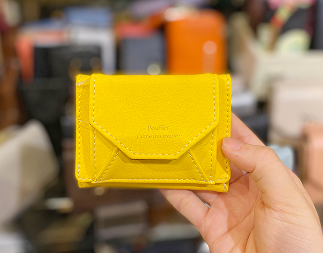 鮮やかなイエローのワンカラーが印象的なお財布。可愛い手のひらサイズだから、ミニバッグにしのばせてちょっとしたお出かけにもぴったりなアイテムです。