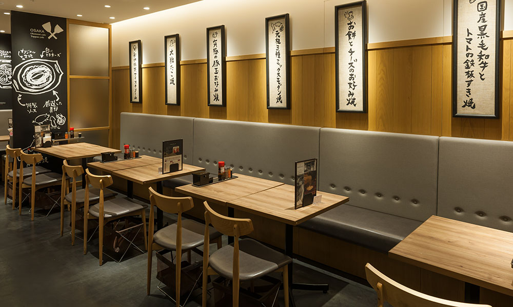 お好み焼をテコで「ぼて」と返し、「ぢゅう」と焼く、そのリズムから名付けられた「ぼてぢゅう」。 食い道楽の本場大阪で生まれたお好み焼・焼そばの専門店です。