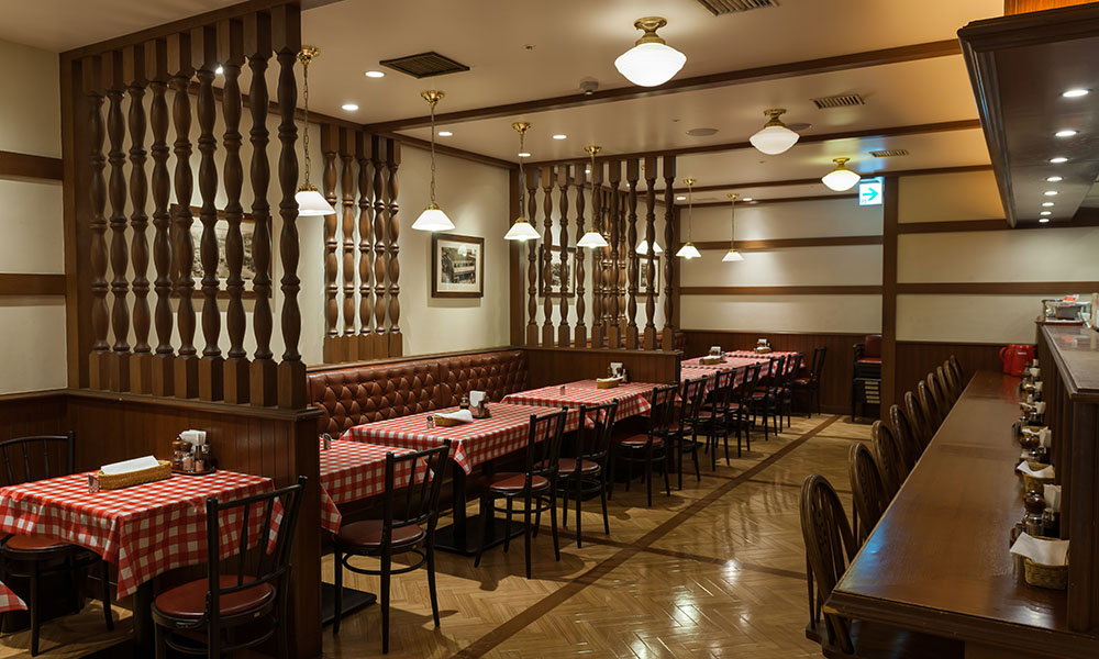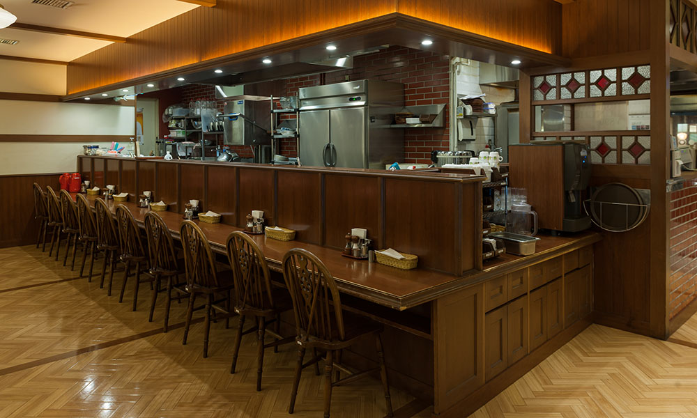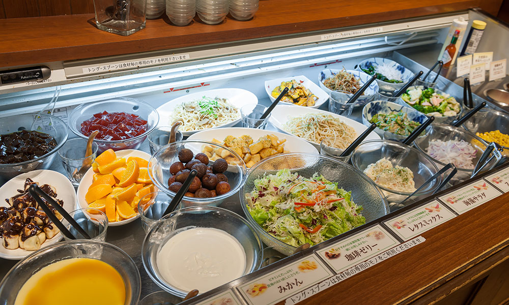 手仕込ハンバーグやこだわりの本格ステーキ、懐かしい味のオムライス、さらにデザートまで楽しめるおかわり自由のサラダバーも充実しています。