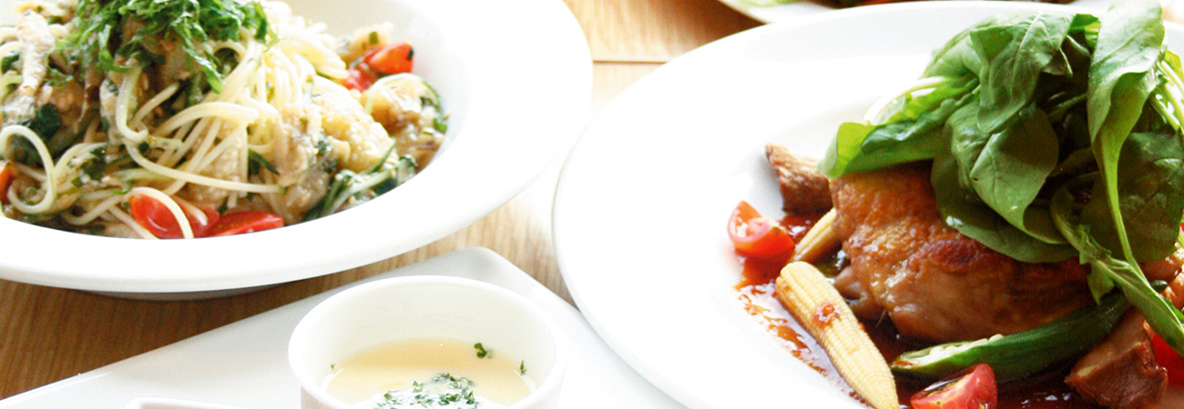 美味しい香り漂う焼きたてパンにシェフ特製の生パスタやメインプレートなど、ランチタイムは毎日でも通えるメニューでお出迎え。